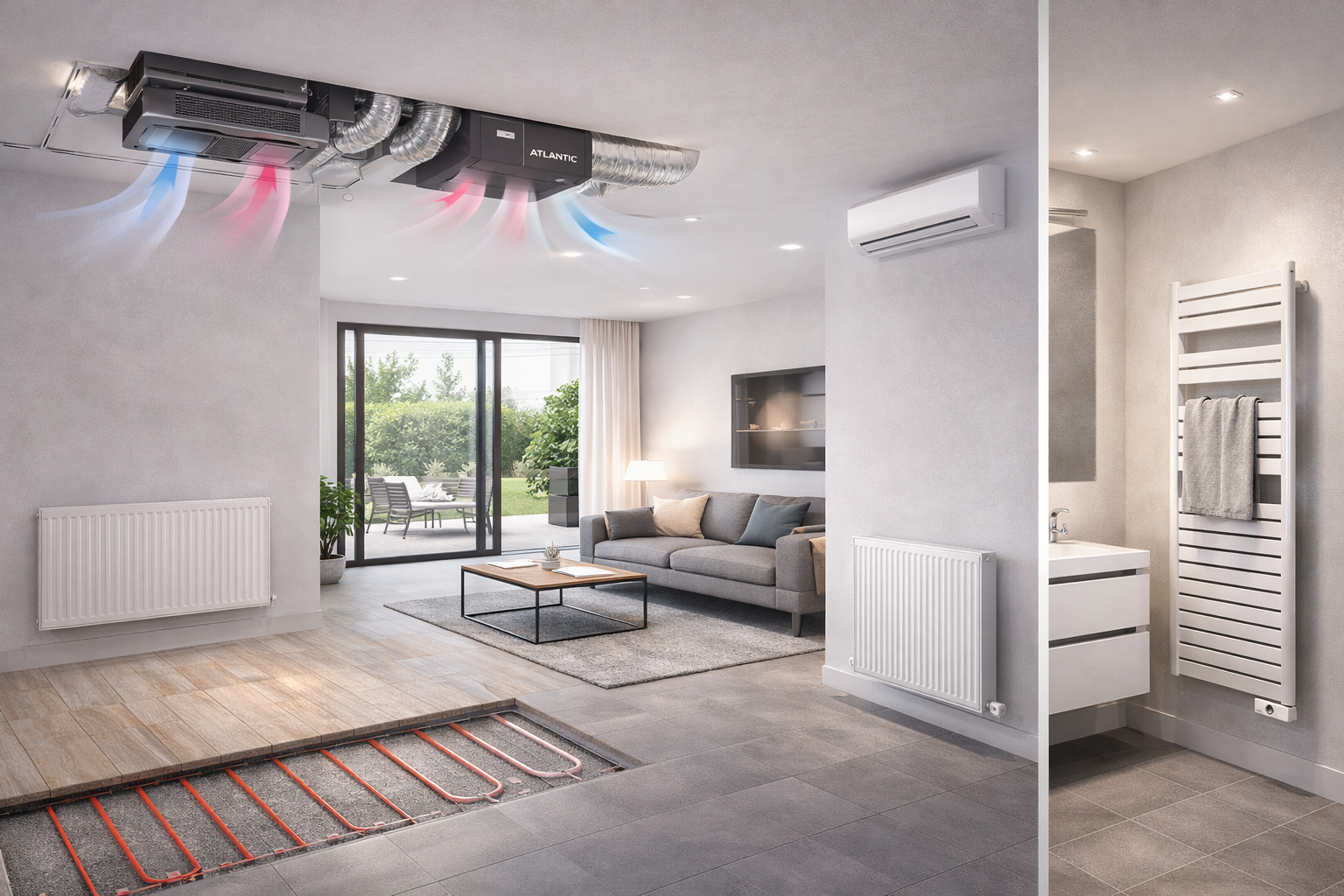 Nous installons différents systèmes de chauffage pour répondre à vos besoins : radiateurs à inertie, sèche-serviettes, climatisation gainable, chauffage au sol et systèmes VRV / DRV.